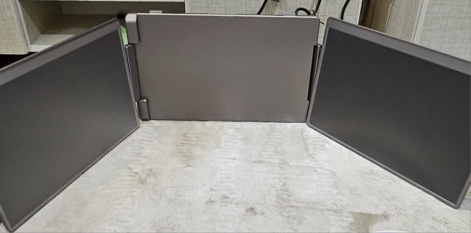 - 💼 Portable Boardroom: Lightweight and foldable, it slides easily into your laptop bag. Set up a full 3-screen desktop experience in under 15 seconds, anywhere in the world.